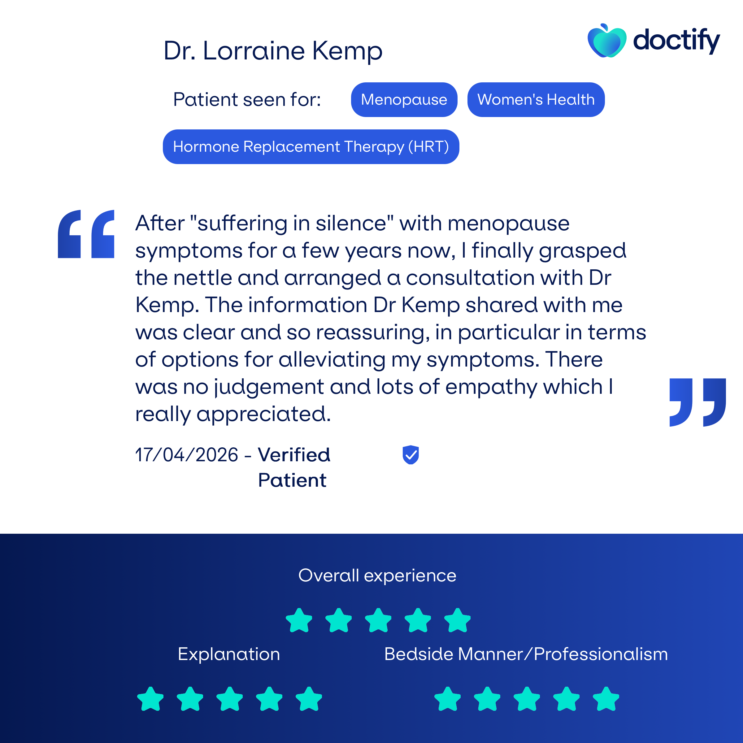 Yes, Dr Kemp is a GMC registered doctor, a GP on The UK National Performers List, and a BMS accredited advanced menopause specialist. She is regulated by CQC working with The Clinic by La Ross.